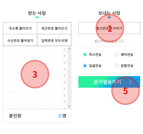 - 4엑셀이나 메모장으로 받으실 분의 번호를 불러올 수도 있습니다.